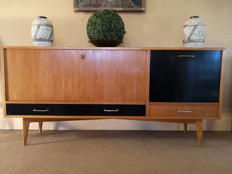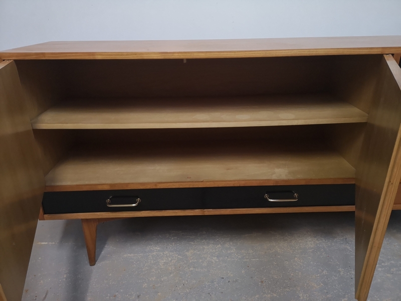 Premièrement, une enfilade vintage qui date des années 1950, en frêne. Le designer de cette enfilade se nomme : Charles Ramos, Editeur : Castellaneta made in France.